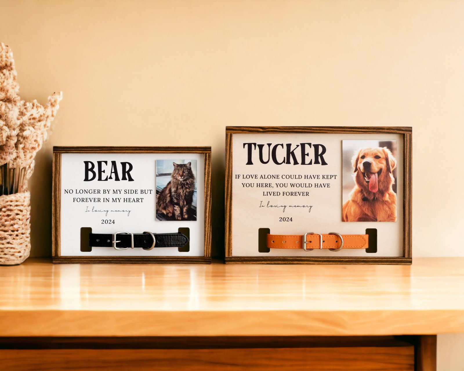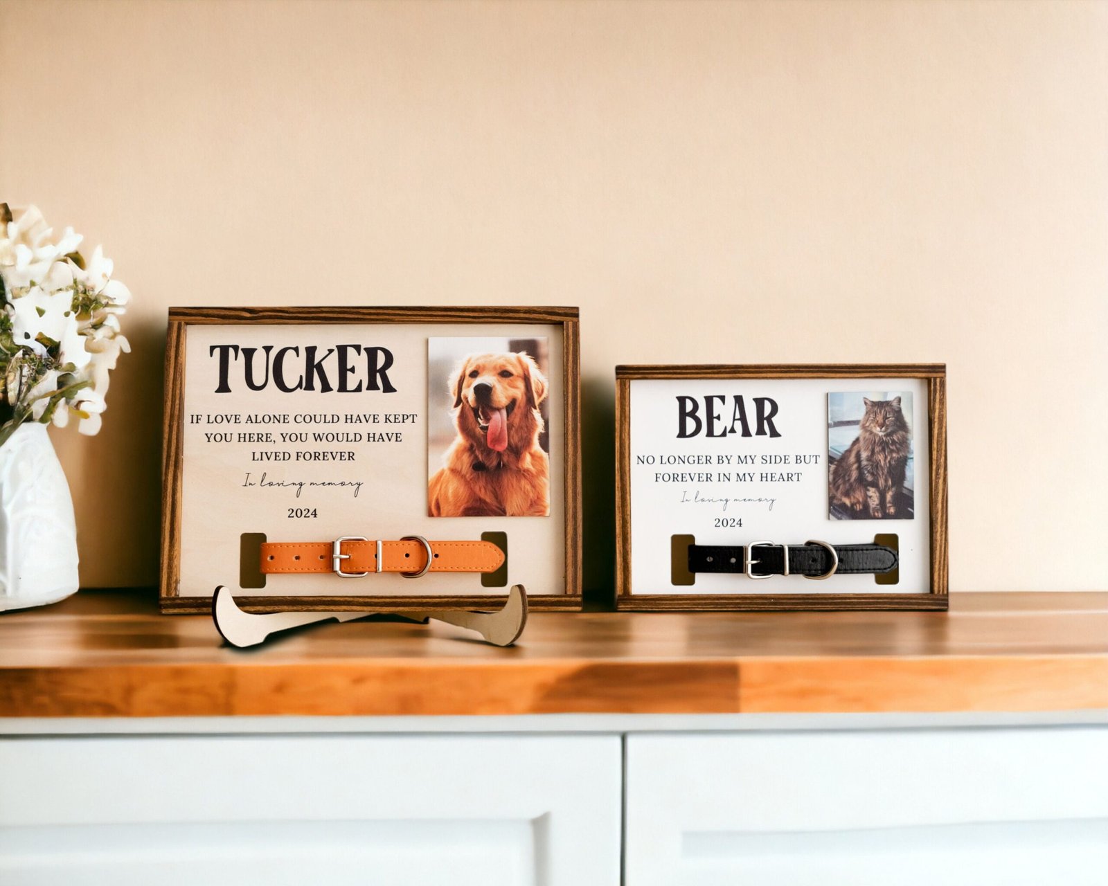 Cherish the memory of your beloved furry friend with our Dog Memorial Sign. This Pet Remembrance Collar Frame serves as a heartfelt tribute, preserving the cherished moments shared. Display your pet’s collar alongside their photo in this Memorial Pet Collar Frame, a touching tribute to their loyalty and love.
