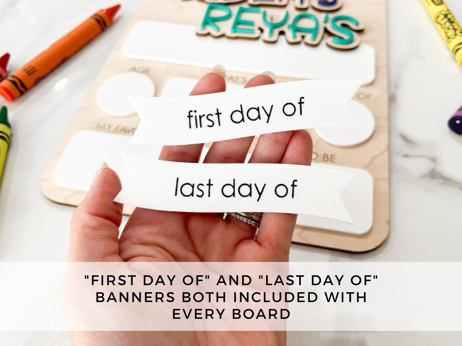 - Dual Functionality: First Day & Last Day Each board comes with interchangeable headers: “First Day Of” and “Last Day Of”, letting you use it twice a year without buying a new sign.